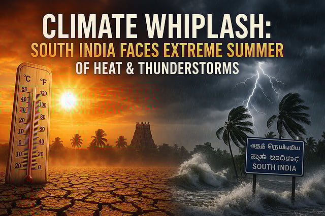 High-stakes assembly elections across three southern states Tamil Nadu, Kerala and Pondicherry... where the scorching summer is matching the blazing political heat. Temperatures are roaring past 40°C, and lightning strikes are hitting without warning. Right now, South India is dealing with a one-two punch: searing heat and sudden storms. It's not just an inconvenience—it's a threat that people feel across cities and villages, putting health and the economy at real risk.